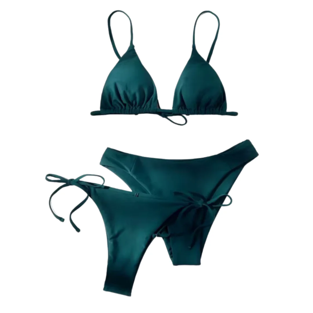 Este set de bikini de tres piezas es ideal para tus días de playa o piscina. Su diseño elegante y versátil te permite combinarlo de diferentes maneras para lucir espectacular en cualquier ocasión.