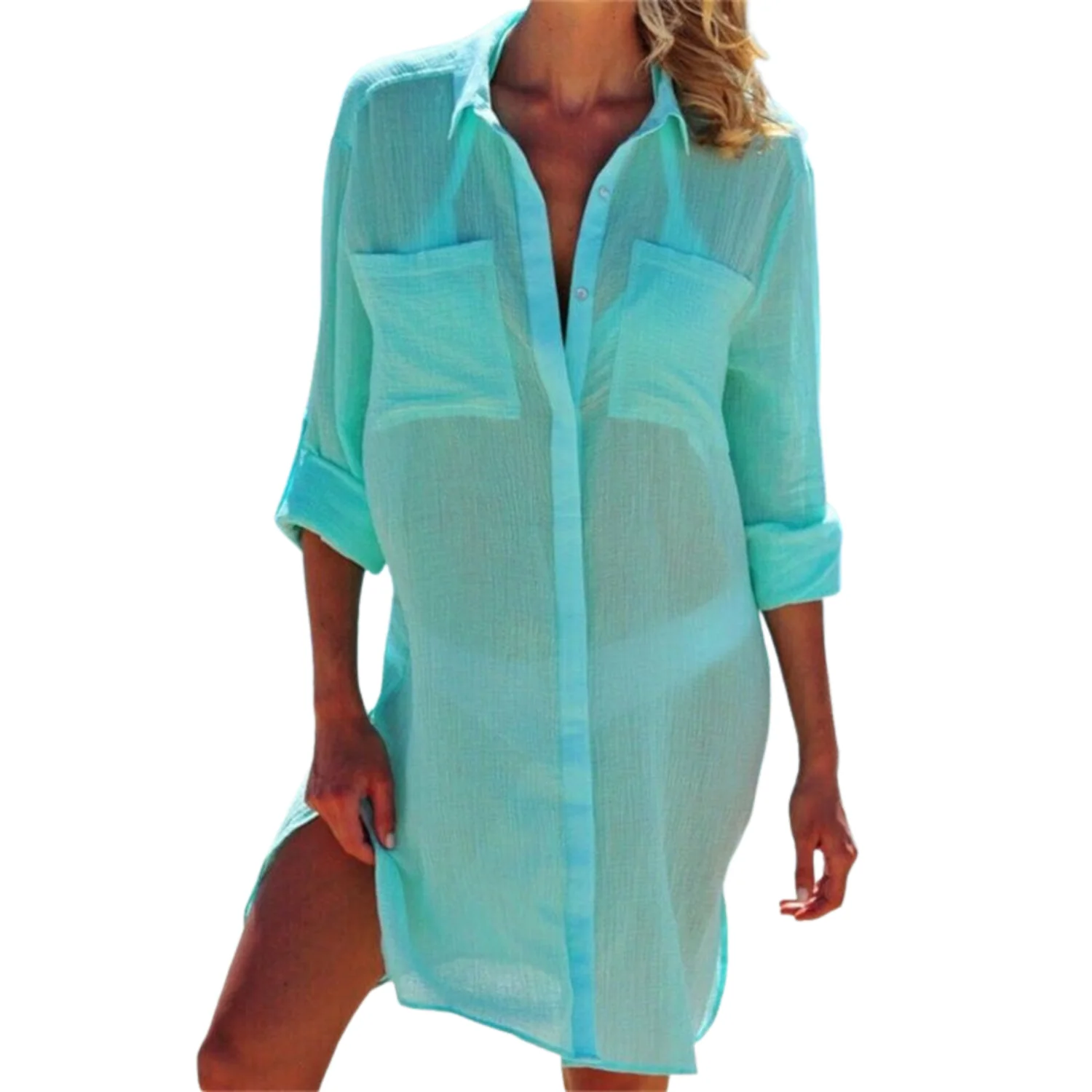 Esta blusa no solo es espectacular, sino también increíblemente versátil. Úsala como salida de baño para tus días en la playa, como camisa formal para un look sofisticado o amárrala para un estilo fresco y relajado. Su diseño con cuello, bolsillo y caída ligera la convierte en el aliado perfecto para cualquier ocasión.