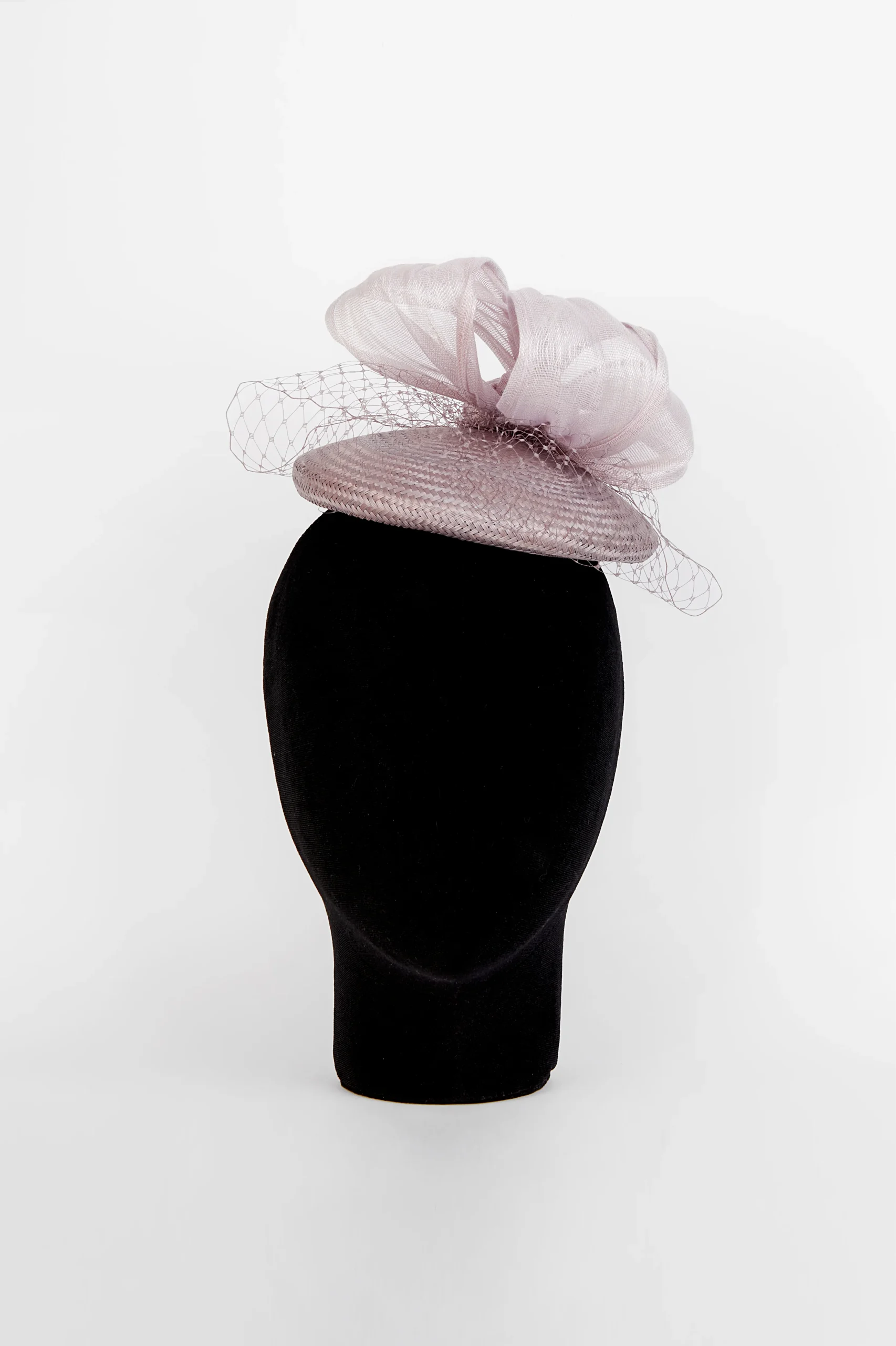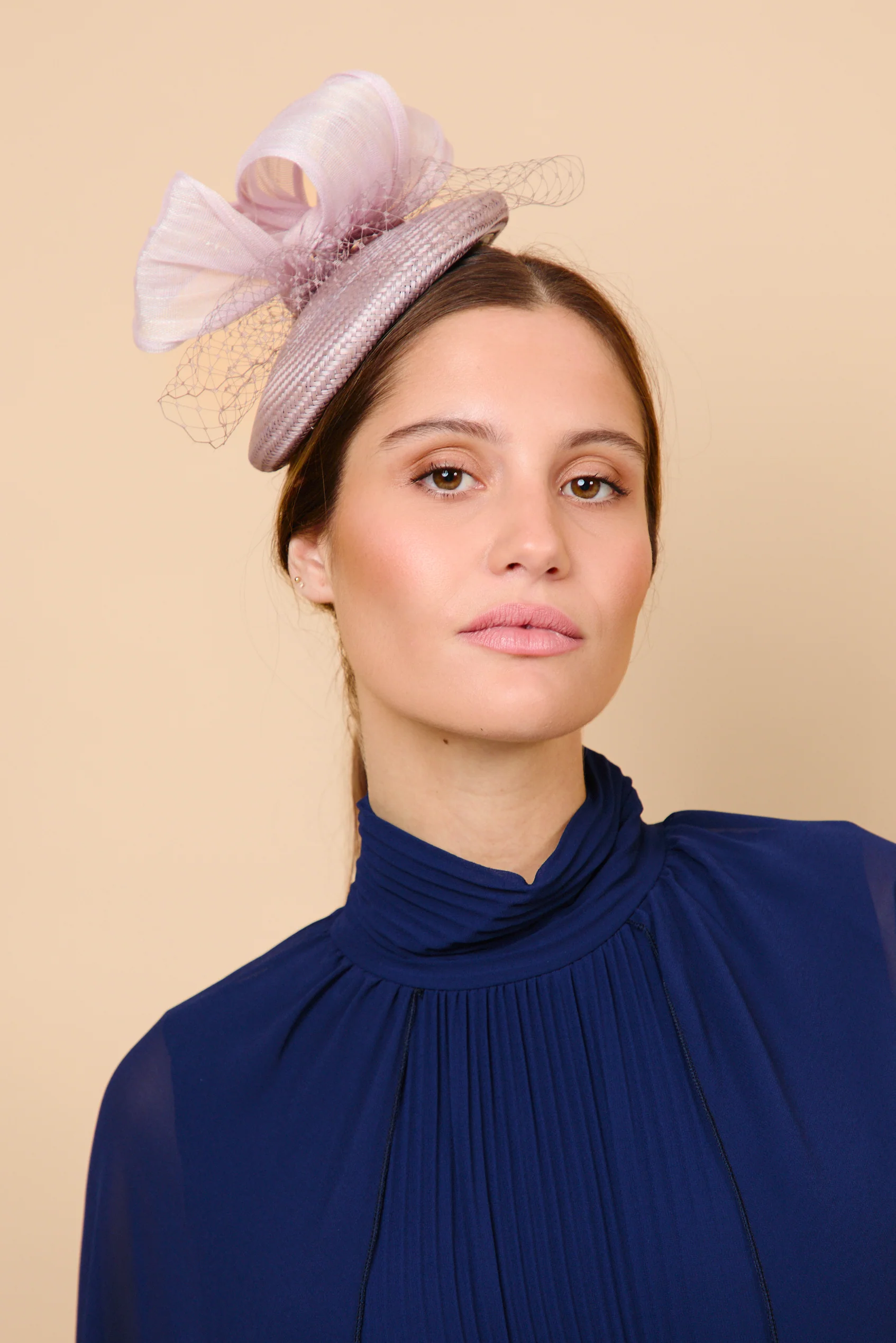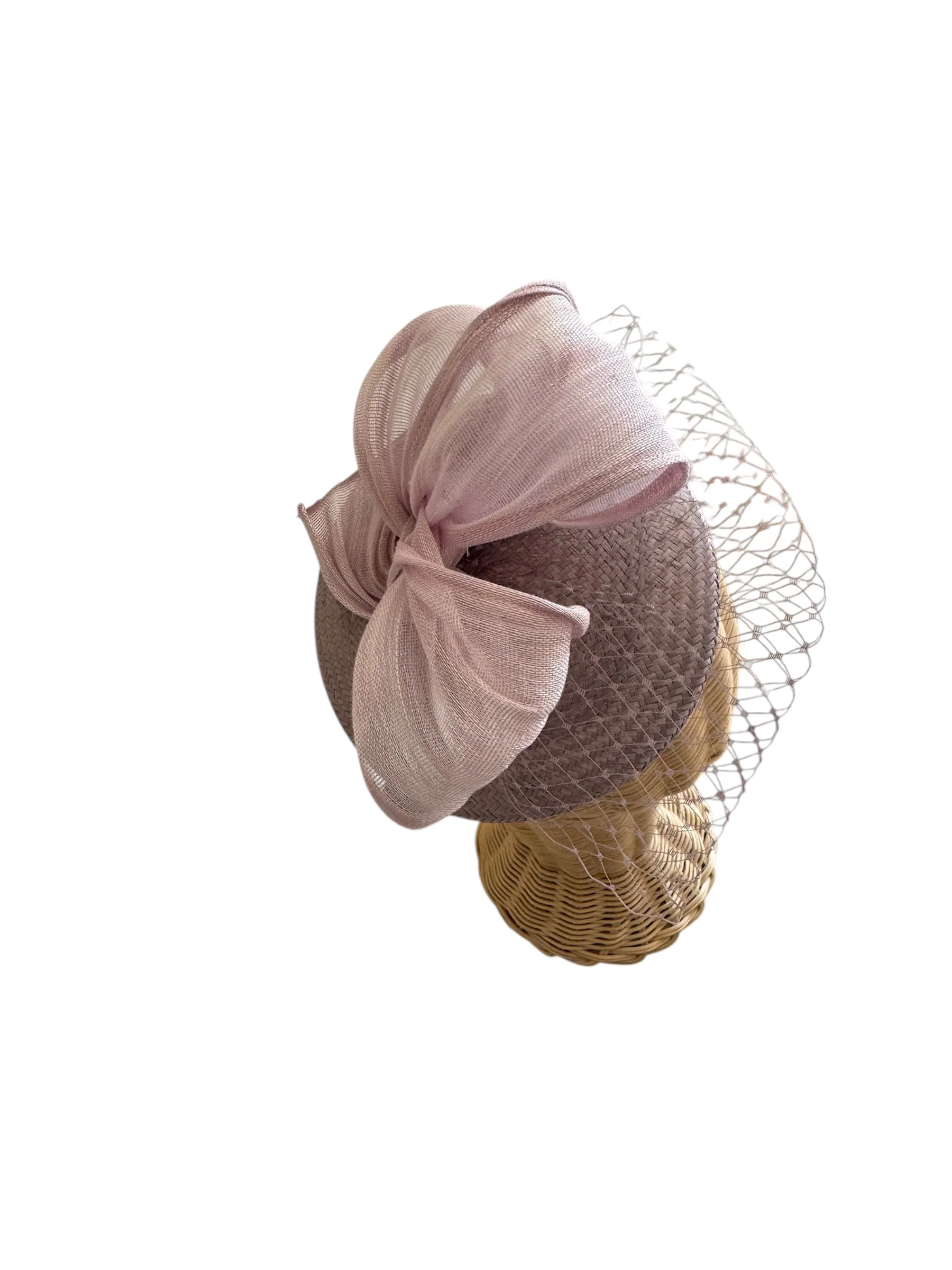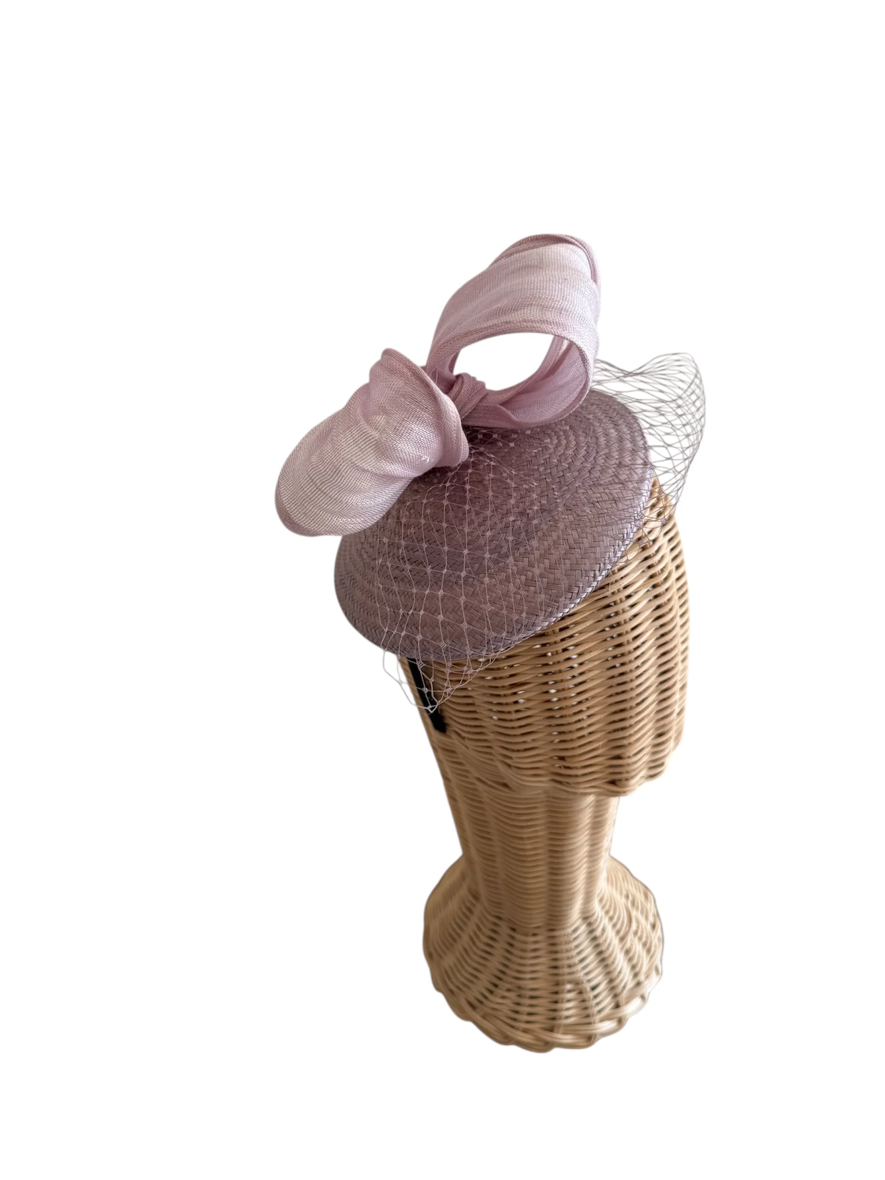 - Diseño adornado con un lazo de sinamay y redecilla, una combinación de texturas que aporta volumen, movimiento y un acabado artesanal muy cuidado.