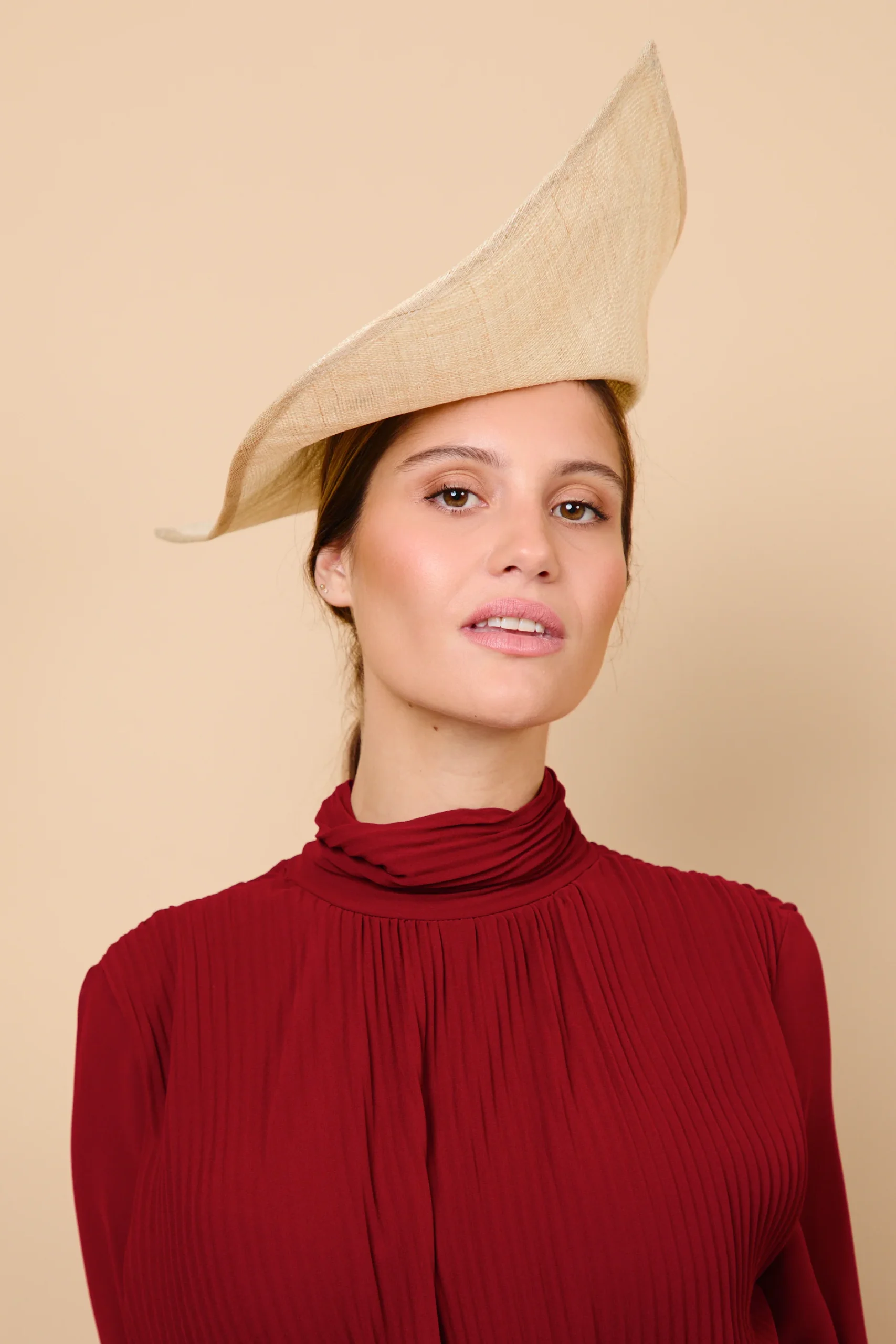 Este tocado de sinamay en formato XL ofrece múltiples posibilidades para completar distintos estilismos. Algunas ideas: