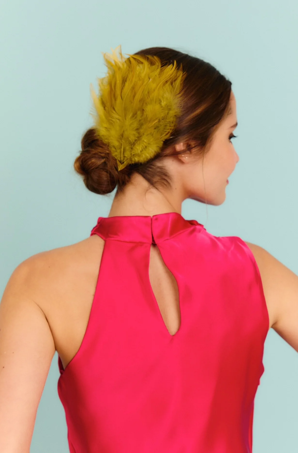 - Confeccionado con un conjunto de plumas, un material delicado que aporta movimiento, textura y un acabado refinado que realza cualquier recogido.