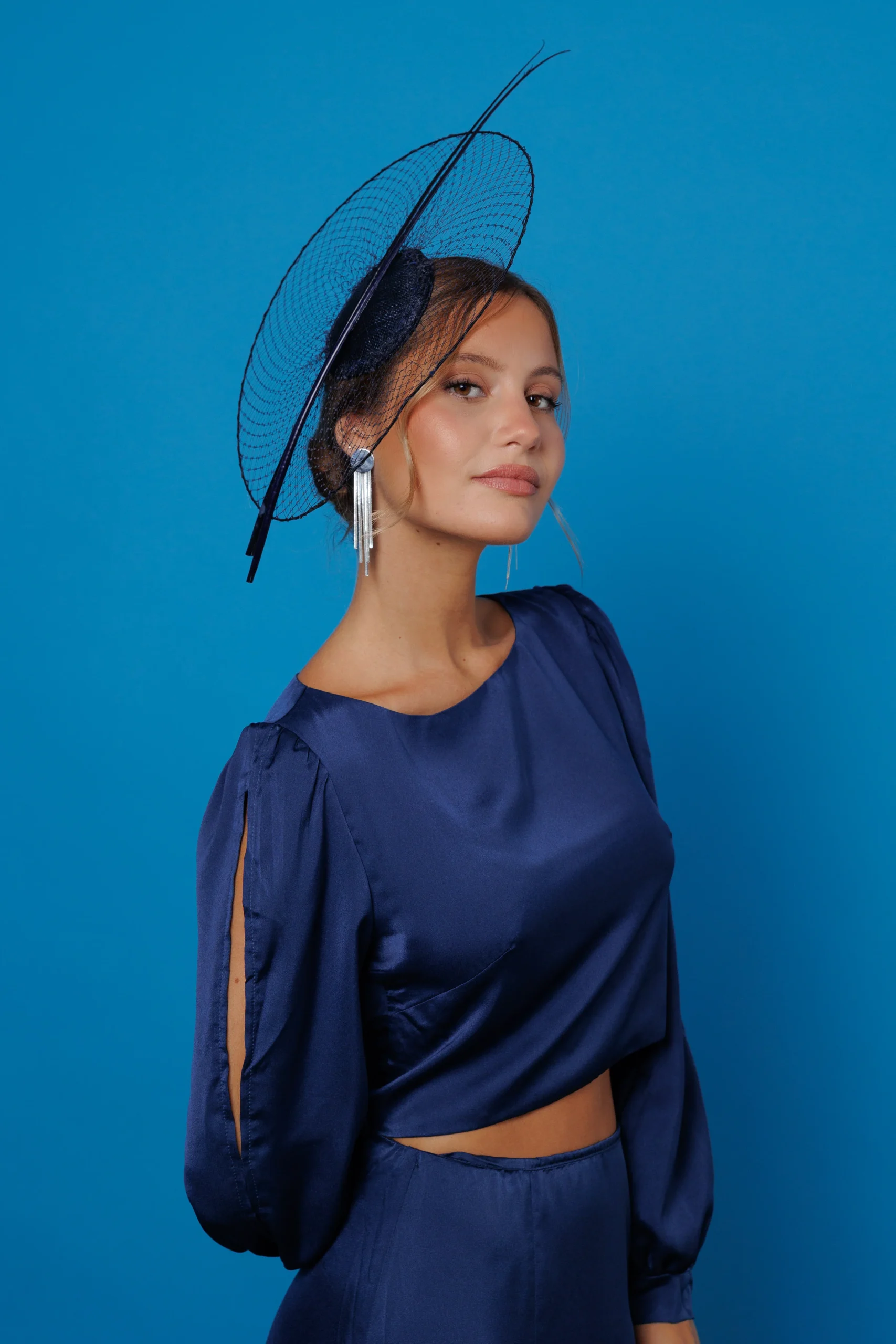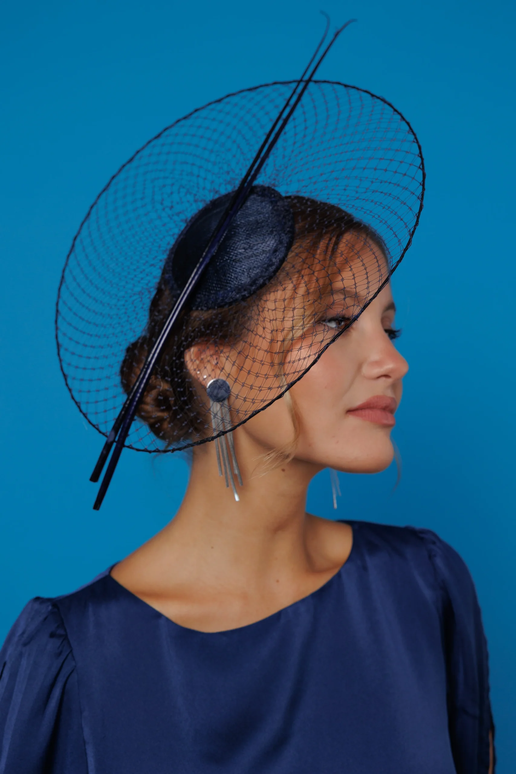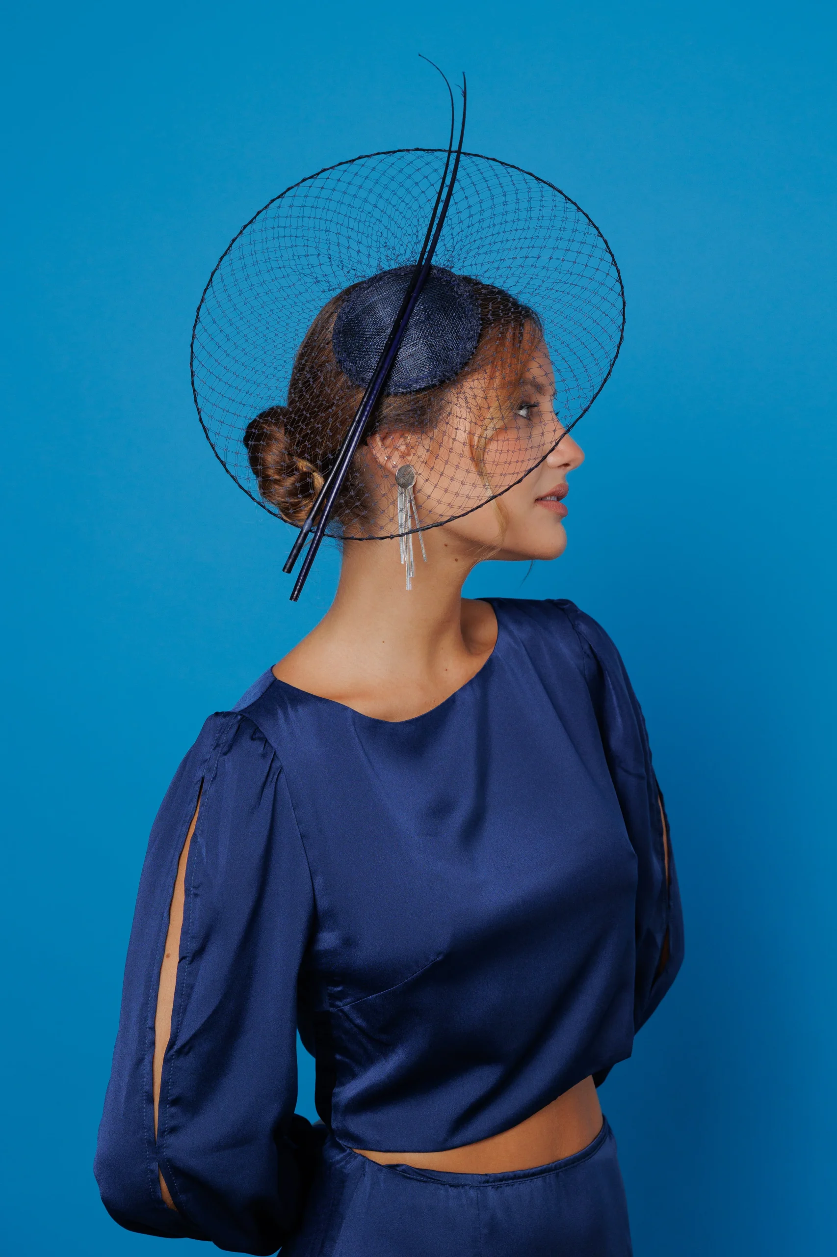 Este tocado de redecilla con raquis ofrece múltiples posibilidades para crear looks elegantes y bien definidos. Algunas ideas: