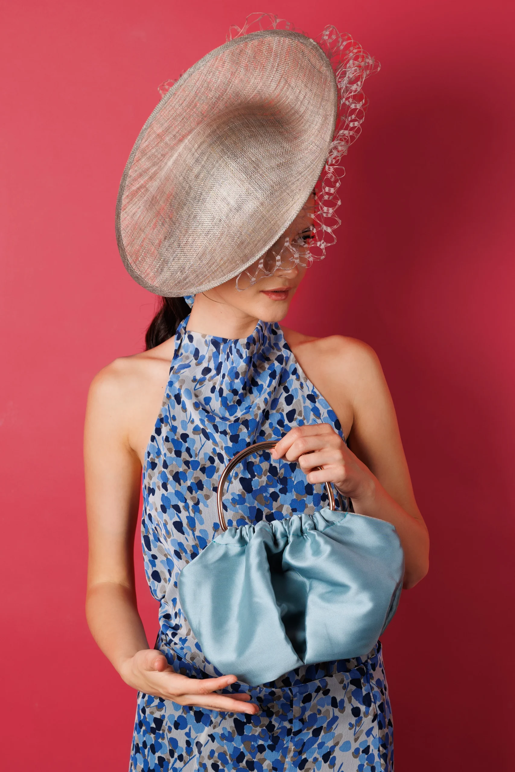 - Confeccionado en sinamay, un material natural ligero y estructurado muy valorado en la alta sombrerería, ofrece equilibrio entre firmeza, comodidad y delicadeza.